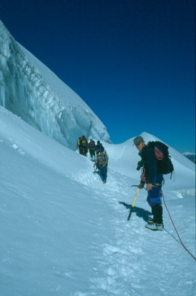 te preko Kreuzbodna (2397m) dvigne do Hohsaasa (3098 m). Pogled na Weismiess s svojimi snežnimi