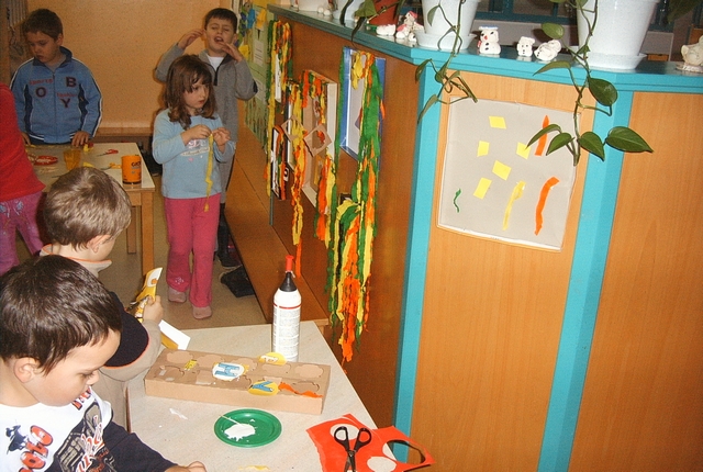 ustvarjanje v oddelku predšolskih otrok, ki gostujejo v šoli.