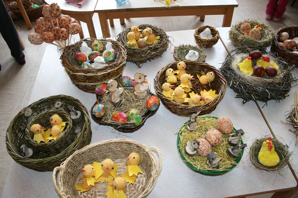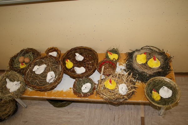 Otrok je s starši in starimi starši imel možnost oblikovati gnezda s šibja. Vse te ustvarjalne ideje so razstavljene v šolski avli in na Občini na razstavi. Vzgojiteljica: Terezija Vidovič
