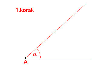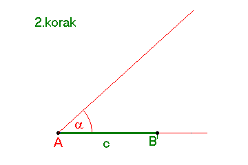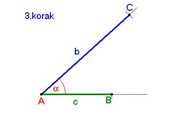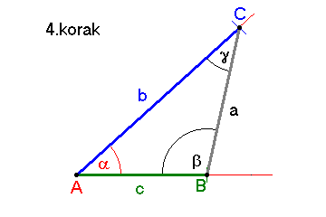 4. korak narišemo in označimo stranico BC označimo preostala dva kota β, γ