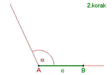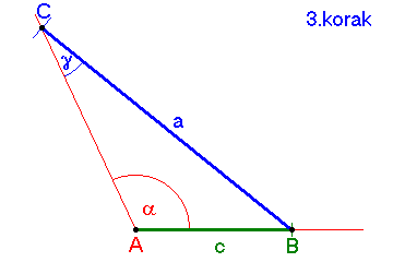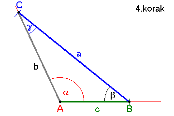 4. korak narišemo in označimo stranico AC označimo preostala dva kota β in γ