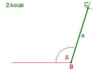 2. korak narišemo in označimo stranico BC~{a}