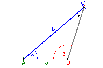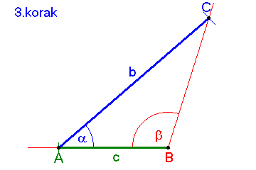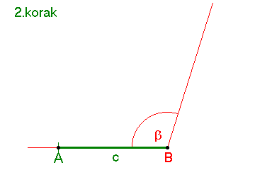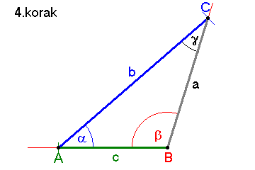 4. korak narišemo in označimo stranico AB označimo preostala dva kota γ in α