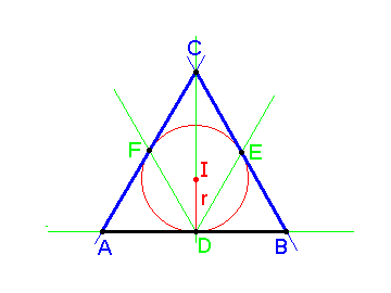 načrtamo krožnico s polmerom r, središče označimo z I