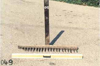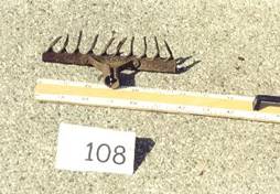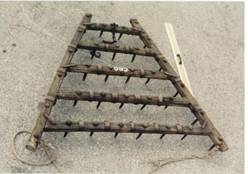 železom in ima pet polic ali lat, v katere so vpeti železni zobje.