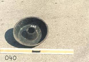 razširjenim robom. Skozi luknje v čeladi so na robu napeljani trije roglji