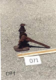 podnožju je velik železen kvader, ki ima na vsaki strani rog. En rog je v