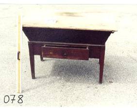 okvir iz trdega lesa in se proti vrhu zožuje. Na več mestih je okovana z
