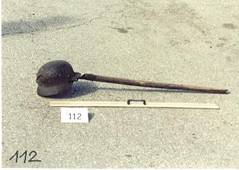 železnim oglatim delom z luknjo, kamor je nasajen ročaj. Za razliko od