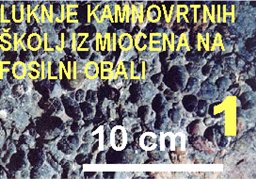 In the Miocene (13 milion years ago), numerous lithopyte molluscs of the species Lithopaga populated the pricipitous rocky shore formed by limestone from Jurassic period (110 million years ago), While on the even bed of the shallow sea, sandy sediments with sharp-edged stone fragments accumulated all thatremains as proof of the lithophyte mollusc activity are holes of approximately equal depth. None contain a mollusc shell, signifing that they were washed away by the motion of the sea and currents or later dissolved. The majority of fossil oyster shells are up to 10 cm long d have been preserved as samples ofdiffering qualities. A few specimen have become attached to the limestone wall in a true-to-life position; most, however, are to be found among the fine breccia fragments.