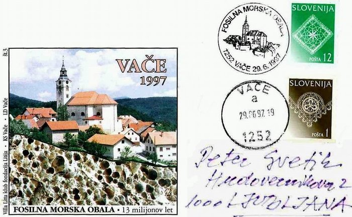 Ob slavnostnem odkritju fosilne obale 29.junija 1997, je fondacija Villa Litta izdala spominsko ovojnico.