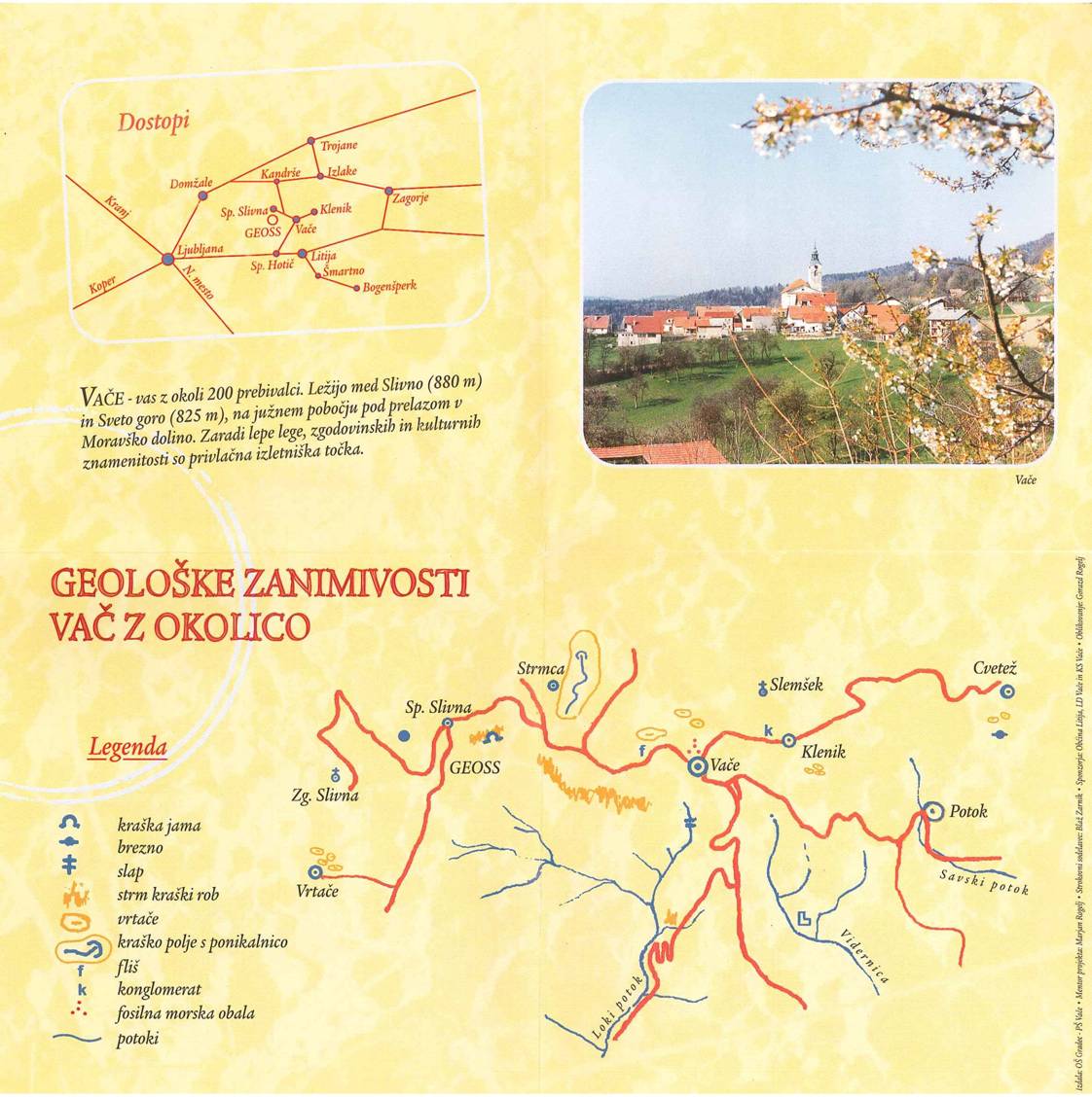 Zloženko izdala: OŠ Gradec – PŠ Vače * Mentor projekta: Marjan Rogelj * Strokovni sodelavec: Blaž Zarnik * Sponzorja: Občina Litija, LD Vače in KS Vače * Oblikovanje: Gorazd Rogelj