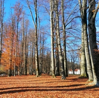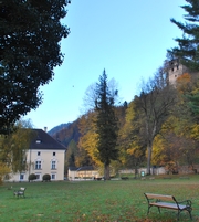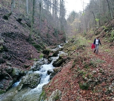 potoku s številnimi slapovčki, skozi gozd in nazadnje skozi drevored kostanjev.