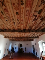 leseni – vuzeniški strop iz leta 1653 s številnimi motivi iz vsakdanjega