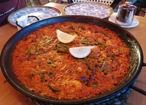 proti hostlu. Razpakirava in se odpraviva v bližnjo restavracijo na paelo, Miro