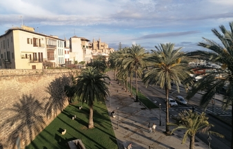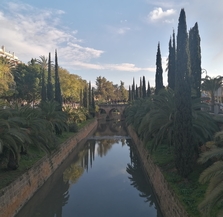 Mallorca. Ob kanalu Torent de Sariera, posajenim s palmami, se sprehodiva do