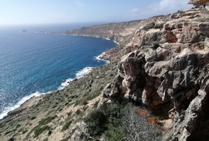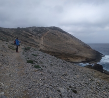 Nekaj časa hodiva po cesti nad obalo, nato v hrib nad klife in do zaliva