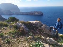 Cala del Monjo. Povzpneva se na rob klifov, kjer je razgled na morje še