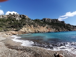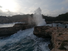ne kopava. Zapeljeva se še do plaže Cala Almunia. Visoki valovi