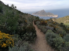 klife in otok Dragonera). Od tu na preval na J strani hriba, potem pa se steza