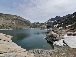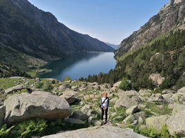 Vstaneva v mrzlo jutro, 7°C. Zapeljeva se spet v Caldes de Boi. Od tu naprej s kamperjem ne smeva, ker je širši od 2m. Peš jo ubereva po pešpoti do zgornjega parkirišča pri jezu Cavallers (3km-1.5 ure hoje). Nato ob desnem bregu jezera Panta de Cavallers, čez Pletiu de Riumalo , Baranc de les Llastres in Pas de l'Osso. Hodiva čez potočke, z vseh strani teče voda. Prideva do Estany Negre. Jezero leži ob vznožju sten v senci gora Picos de Comalespada (J) in Agulles de Travessani (SV). Dvigneva se nad jezero in na drugi strani deročega potoka vidiva kočo Joan Ventosa i Calvell. Ker deroče vode ne moreva prečkati, se dvigneva do jezera Estany de Travessany. Miro se sezuje in ga po robu , kjer se voda izliva v strm potok, prečka. Povzpne se više mimo številnih jezerc in čez zaplate snega do prelaza Port de Caldes . Začnejo se valiti temni oblaki. Hitiva v dolino, rahlo rosi. V 23km prehojene poti sva se povzpela za 1100višinskih metrov. Peljeva se proti Vielhi. Po celem mestu je prepovedano parkiranje za kamperje, tako da se ne ustaviva. Malo naprej od vasi Garos parkirava na parkirišču za kamperje. 75Km