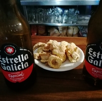 Pedro. Posediva ob kanji-malo točeno pivo. Prespiva na parkirišču za kamperje