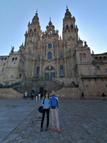Megla, 10°C. Sva zgodnja, ob 7h že startava za Santiago de Campostela, cilj mnogih romarjev, tudi mene pred tremi leti, ki se podajo po eni od mnogih Jakobovih poti. Vsa brezplačna parkirišča so polna, parkirava pri kapeli Sant Blas. Greva na Plaza del Obradoiro s palača Raxoi, razkošnim Hostal de los Reyes Católicos, ki naj bi bil najstarejši hotel na svetu in znamenito katedralo, kjer naj bi bile pokopane relikvije apostola Jakoba. Ker je še zgodaj, je le malo romarjev. Greva v katedralo, ogledava si Portik slave, objameva Santiagovo figuro na glavnem oltarju, se spustita v kripto, prižgeva svečko za zdravje vseh nama dragih in posediva pod mogočnimi orglami s pogledom na ogromen kadilnik, ki ga zanihajo le ob velikih praznikih. Sprehodiva se po mestecu, se ohladiva ob kanji in spet z vanom naprej. Ustaviva se na Playa de Brona, pojeva kosilo in se sprehodiva po dolgi, peščeni plaži. Do ribiškega pristanišča pri mestecu Muros je še veliko peščenih plaž. Midva se ustaviva v pristanišču na velikem brezplačnem parkirišču. Promenada naju pripelje do mesta s stavbami, obrnjenimi proti pristanišču. Stavbe so pretežno bele, visoke največ tri nadstropja, spodaj so bari in trgovinice, nad prvim nadstropjem so zastekljene "galerije". Naslednji postanek je malo iz glavne ceste na Lagao de Louro. Čez sipine prideva do dolge peščene plaže. Zadaj je še ena laguna, Carnota. Do nje prideva po lesenih mostičkih čez močvirje in sipine. Ko se vračava na glavno cesto, si ogledava še najdaljši, 35m dolg, Horreo. To je žitnica na stebrih, značilna za to pokrajino, zgrajena iz lesa ali kamna. V kraju O Pindo parkirava pri cerkvi. Kljub pozni uri začneva pohod na Monte Pindo. Steza vodi ob zaobljenih granitnih skalah, bodečem grmičevju in številnih izvirkih. Na vrhu malo poplezava po gladkih skalah do razgledne točke A Moa, na 627 metrih nadmorske višine. Gladka skala ima na vrhu izdolbene okrogle bazenčke z vodo. Lepi pogledi na Atlantski ocean in obalno panoramo. Gora velja za mitski kraj s številnimi legendami o starodavnih prebivalcih, Keltih, in o magičnih lastnostih območja. Sveto goro Keltov imenujejo tudi keltski Olimp. Hitiva nazaj in po 3h hoje in 9. prehojenimi km sva nazaj. Odpeljeva se še do slapu Ezaro pri elektrarni. Prenočiva ob plaži Playa de Sardineiro. 225km