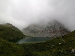 dvigne do koče. Meglice se začnejo počasi dvigati, tako da vidiva jezero in del