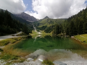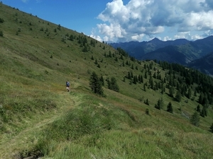 Četrtek, 7.8.: Zjutraj kolesarim na prelaz Tilliacher Joch (nv 2099m). Cesta se iz vasi spusti do reke Zilje in začne rahlo vzpenjati po dolini. Za drugim mostom čez potok se strmeje vzpne do jezera Klapsee in nato v serpentinah še strmeje do koče Porzehutte. Pod kočo zavijem desno na muletjero ki v serpentinah pripelje pod prelaz. Tam se cesta konča in začne ožja vendar peščena steza (tu kolo porivam) v dolžini 200m ki pripelje na prelaz. V 10,5km se dvignem za 870m. Spustim se nazaj do jezera, do katerega je malo pred tem s kolesom prisopihala Danila. Obhodiva jezero, uživava v pogledih na gore, nato se skupaj spustiva v dolino do vana. Ker sva zgodnja se odločiva še za popoldanski pohod na Golzentipp (nv 2317m) po strmi stezi preko Ubergrippa. Razgleden hrib s pogledi na Karnijske, Linške alpe, Dolomite, Grozglockner... V dolino se spustiva mimo zgornje postaje sedežnice in nato po smučišču in delno po cesti nazaj v vas Obertilliach. Prehodiva 11km, 1000vm vzpenjanja, hoje 4h. Popoldne se zapeljeva v Toblach, kjer prespiva. 58km
