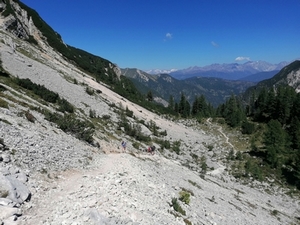 pod grebena gora. Tu zavije steza v desno čez dve melišči, na zgornji plato,