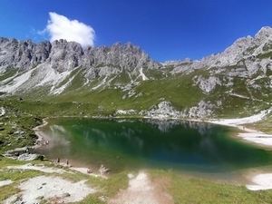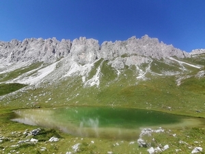 stene Cogliansa. Sprehodiva se okrog jezera na prelaz, nazaj do koče, ter nazaj
