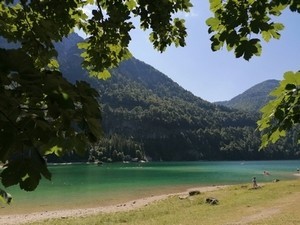 Bovca in Predila se zapeljeva do Rajbelskega jezera. Parkirava ob jezeru. Miro