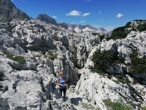 tudi malo lažjega plezanja. Ta del poti je zanimiv, saj je speljan med