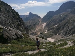 zahtevnejši, zahteva nekaj lažjega plezanja. Do vrha porabiva ~2,5h. Vrneva se