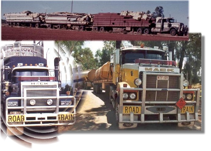 "Road train" je avstralsko ime za do 50m dolge "cestne vlake", ko mogočen vlačilec priklopi tri ali štiri prikolice. Zaradi velikih razdalj so potrebe po čim večji količini prepeljanega blaga razumljive. Posebej znani so "ovčarski" in "naftni vlaki". Seveda pa lahko vozijo le po določenih območjih Avstralije. Ena najpomembnejših povezav poteka