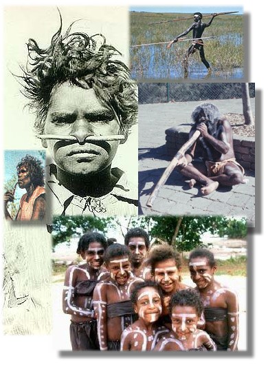 Aborigini so v Avstralijo prispeli iz Azije pred okoli 40000 leti. Naselili so se na tropskem severnem delu kontinenta. Ker niso poznali loka in puščice so pri lovu uporabljali bumerang in vumero (lučalo kopja). Pri njih so globoko zakoreninjena stara verovanja in imajo poseben odnos do narave.
