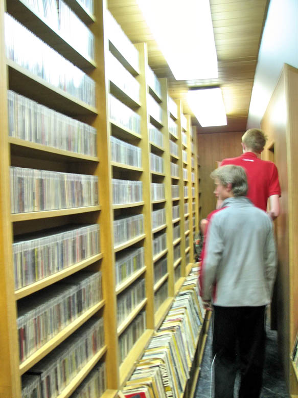 katerem je več tisoč zgoščenk in plošč. Potem jih je pozdravil