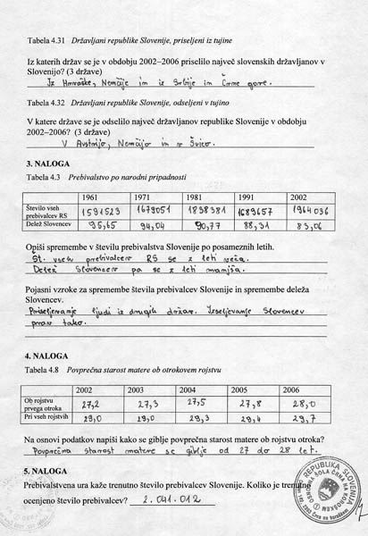 usvojenim znanjem o prebivalstvu Slovenije in zgodovino.