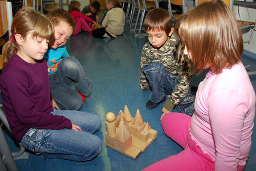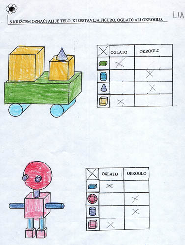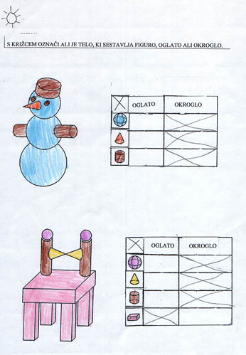 Ločevanje OGLATIH in OKROGLIH teles ter sestavljanje.
