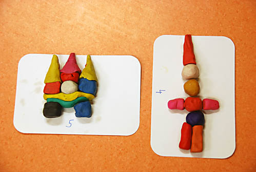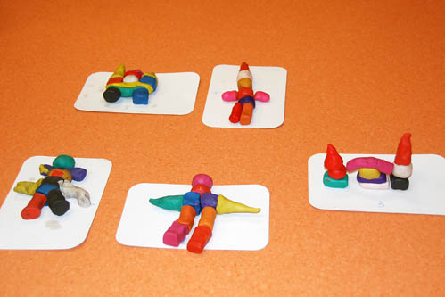 Oblikovanje figur iz OGLATIH in OKROGLIH teles iz plastelina.