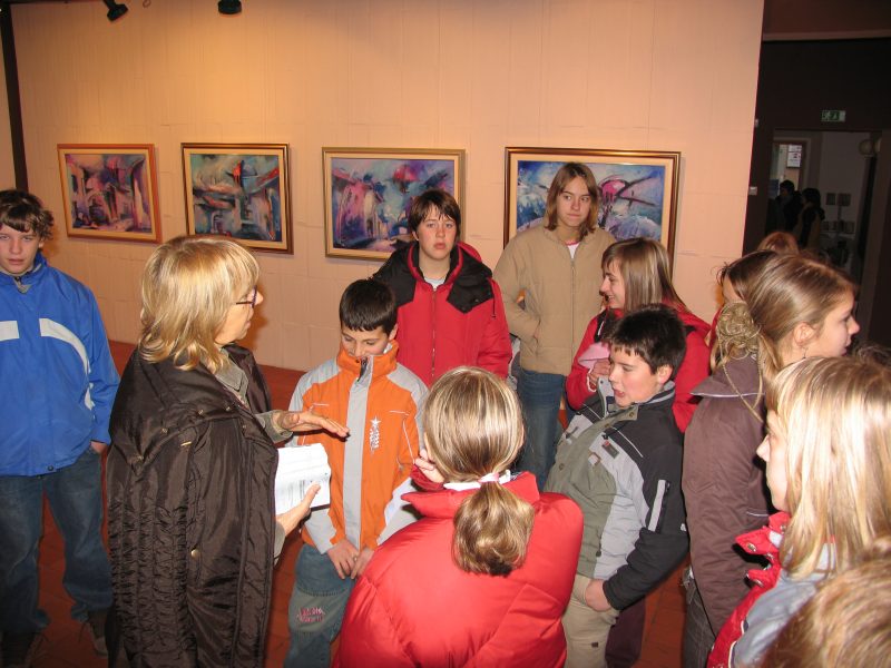 3 muhe na en mah. Obiskali smo Lavričevo knjižnico, Pilonovo galerijo in razstavo fosilov v Domu krajanov. Nikamor daleč ni bilo potrebno potovati in lomiti ure, polne kilometrov. V Pilonovi galeriji smo si ogledali stalno razstavo Vena Pilona in razstavo slik Braneta Jazbarja,