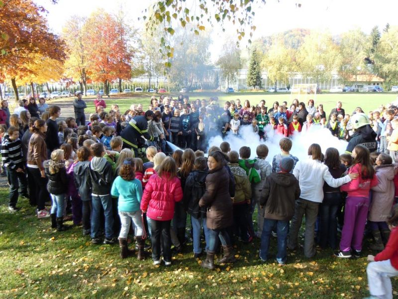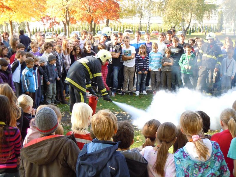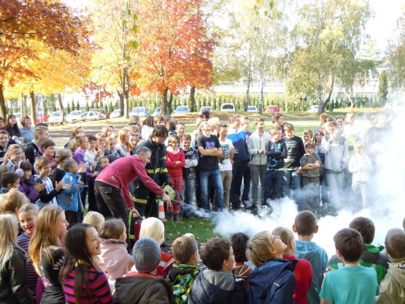 Danes, 28. 10. 2011 smo na šoli imeli požarno vajo. Gasilci iz PGD Kamnice so nam demonstrirali gašenje z gasilskim aparatom. Nekateri izmed učiteljev smo se preiskusili v gašenju požara.