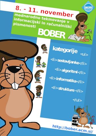 tekmovanje_bober21. januarja 2012 je na Fakulteti za računalništvo in informatiko v Ljubljani potekalo državno tekmovanje v informacijski in računalniški pismenosti (BOBER) učencev osnovnih in srednjih šol.