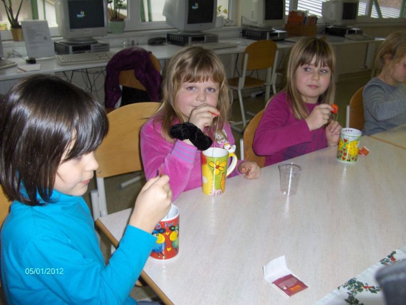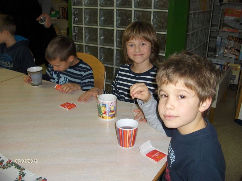 Danes nas je knjižničarka povabila v knjižnico na pravo čajanko. Veliko smo izvedeli o čajih in njihovem zdravilnem učinku. Izvedeli smo, kako se čaj pravilno pije in pripravi. Seveda smo čaj tudi pili.