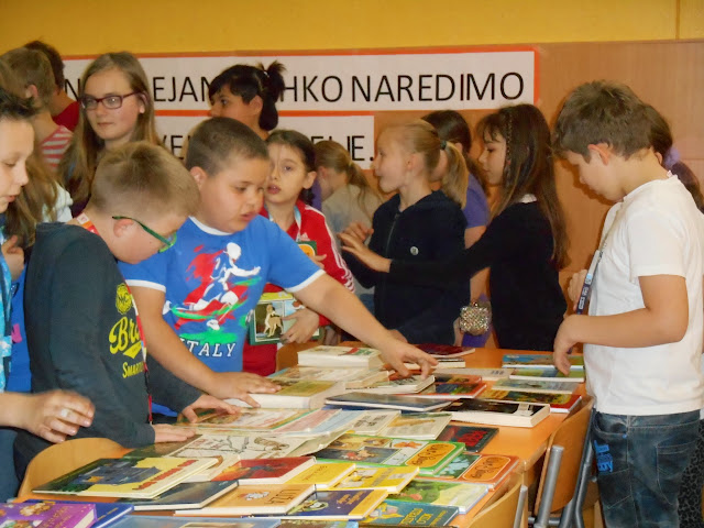 Zaposlene, učence in njihove svojce smo povabili, da so darovali knjige, ki so jih sami že prebrali in so se od njih lahko poslovili. Zbrane knjige so zainteresirani lahko kupili po simbolični ceni na knjižnem sejmu 22. 4. 2015. Izkupiček smo v celoti namenili v šolski sklad.