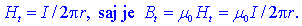 magnetne poljske jakosti H na srednji gostotnici v toroidu,