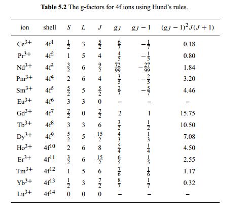 | Gd | Ferromagnet, TC= 289, Msat = 7.5 MB/form unit | Blundell |