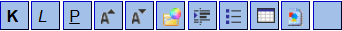 !s presledek !t tabulator !w širši presledek !n nova vrstica !k{bs} krepko !l{bs} ležeče !m{bs} podčrtano !v{bs} povečano !z{bs} pomanjšano !q{bs,br} barva besedila !o{bs,br} barva ozadja** _a{bs} alinea/odstavek _b začetek tabele _c{bs} celica _d začetek vrstice _e konec tabele _f flex vrstica** _g{bs} polovica vrstice** _h konec vrstice** _r{gr} risbe ** _t{gr} tekst ** _s{gr} slike ** _v{gr} videi ** _z{gr} zvoki ** | Matematične oznake
